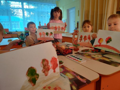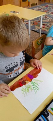 Задачи: - создание выразительного образа при изображении явлений окружающего мира; - формирование индивидуальных, интеллектуальных творческих способностей через использование нетрадиционных техник и материалов в изобразительной деятельности. - развитие творческого воображения, фантазии, мышления через освоение нетрадиционных техник рисования. Дошколята погрузились в мир творчества, поделились своими эмоциями при создании маленьких шедевров.