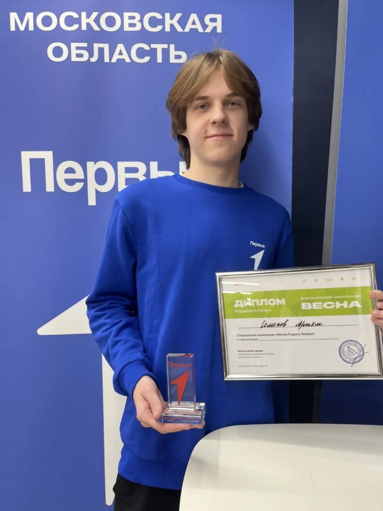 Поздравляем Артема С. - лауреата 2-й степени в номинации "Малая Родина Первых" регионального этапа всероссийского фестивал |