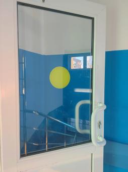 фото дверей с кружочками по пути движения внутри здания